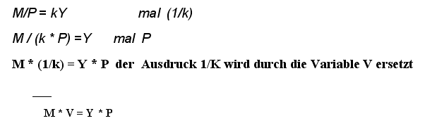 Durch Umformung der Geldnachfragefunktion (M/P = kY) erhält man zunächst den folgenden Ausdruck: